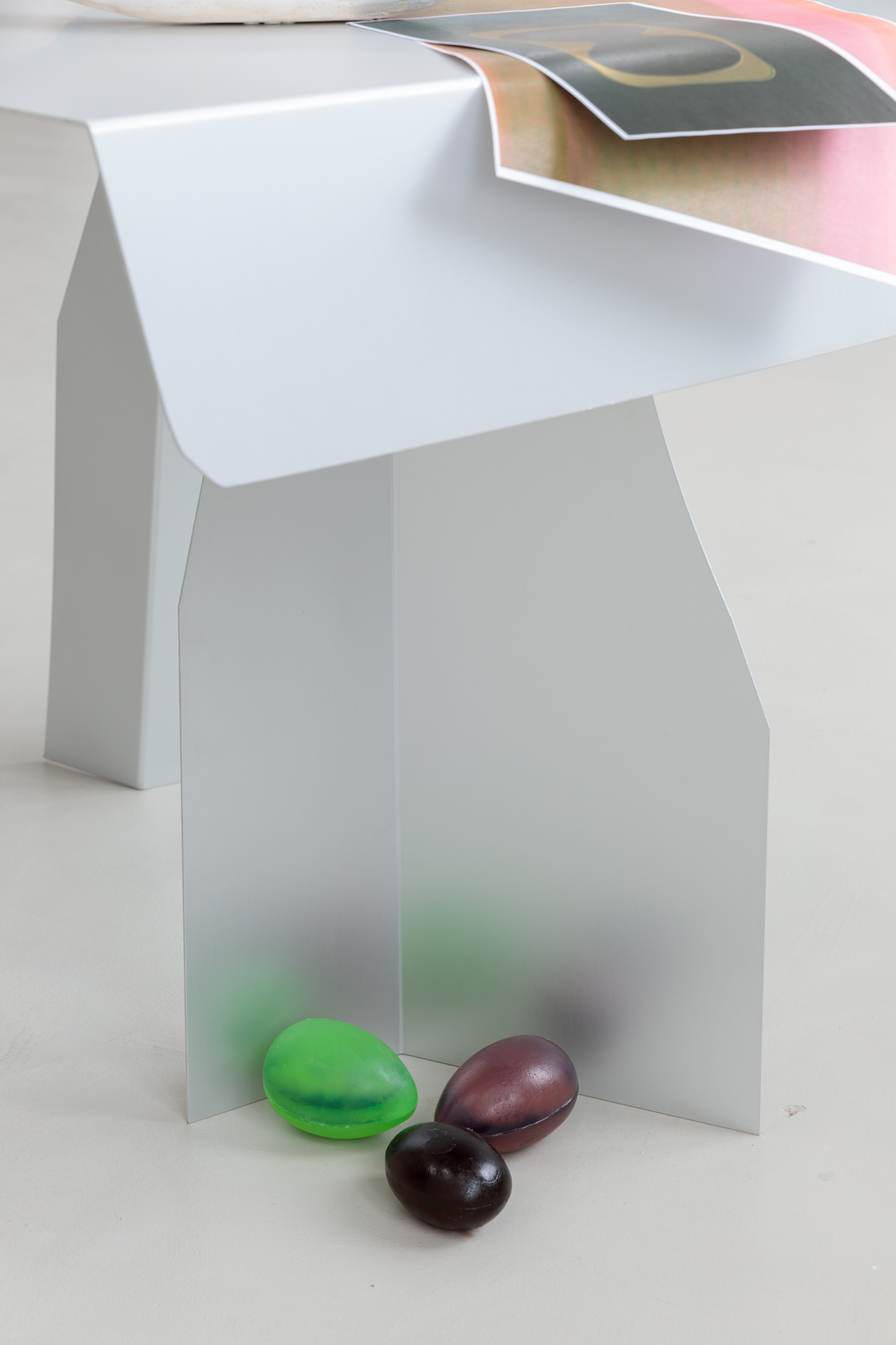 Detailansicht / Detail view: „Asking for a Friend“ („Wir lehren sie gehn“, 2022-23, Aluminium, Keramik, Muschel, 75 x 135 x 120 cm, Achinoam Alon), Kunstverein Nürnberg, 2024