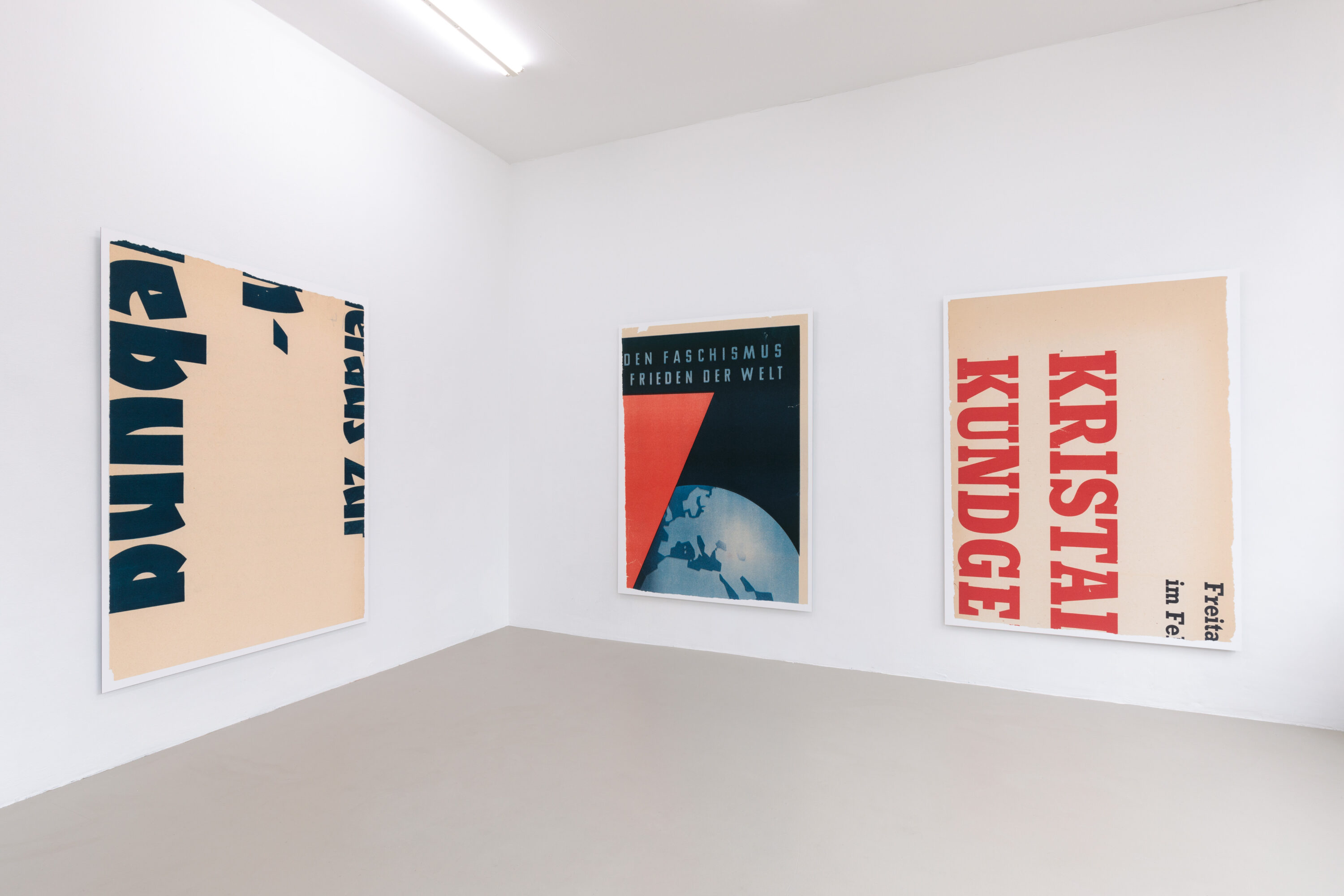 Installationsansicht / Installation view: „Asking for a Friend“ („30. November 1945“, 2022, Kunstdruck auf Alu-Dibond, 200 x 135 cm, Leon Kahane / „10. und 12. Dezember 1945“, 2022, Kunstdruck auf Alu-Dibond, 200 x 135 cm, Leon Kahane / „8. und 9. Mai 1946“, 2022, Kunstdruck auf Alu-Dibond, 200 x 135 cm, Leon Kahane), Kunstverein Nürnberg, 2024