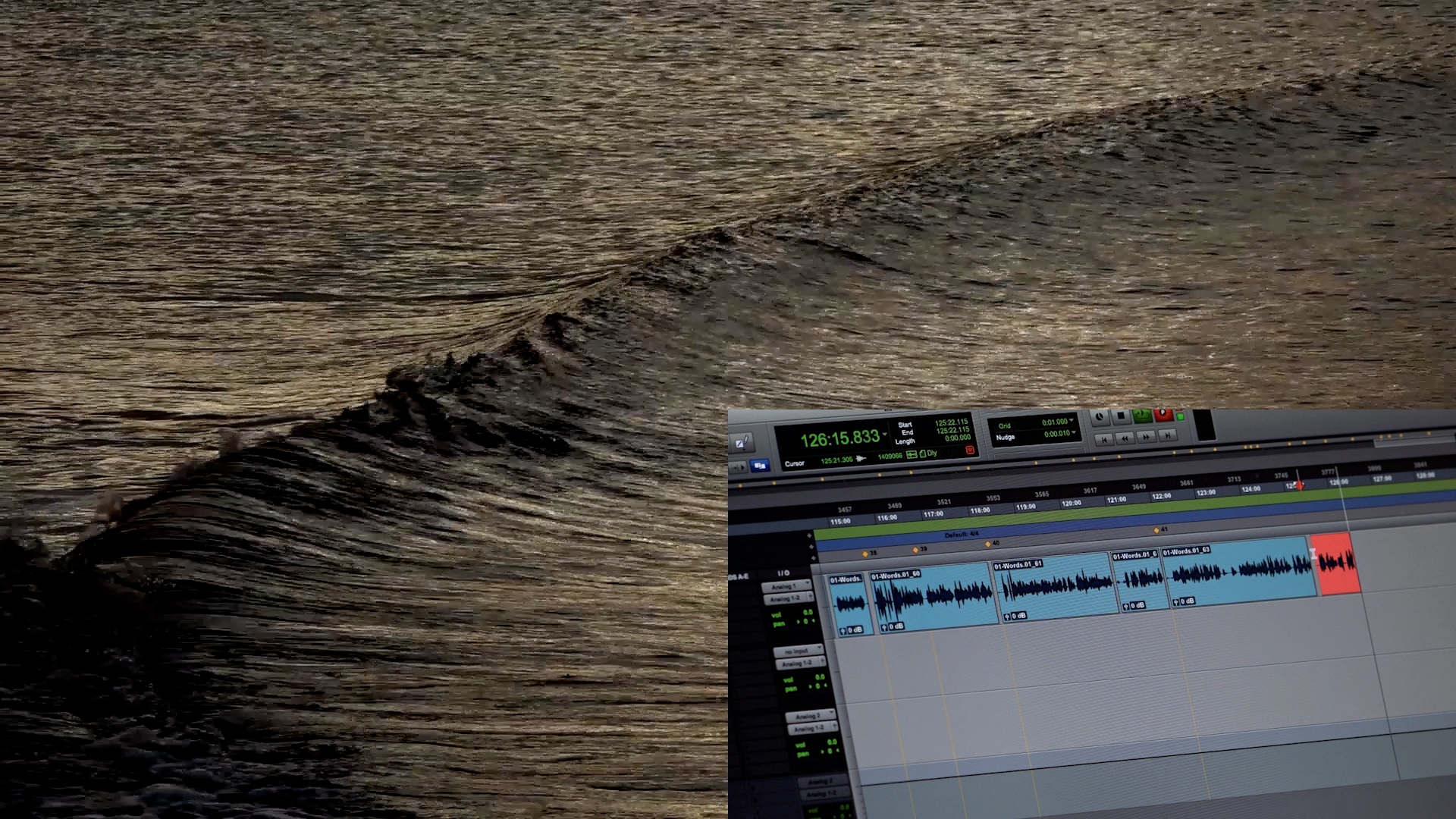 Die 6-Kanal-Soundinstallation Crumb Mahogany des Künstlers James Richards besteht aus einem über die Lautsprecher verteilten Musikstück, in dem sich unterschiedliche Melodien mit der Akustik realer Räume vermischen. Zentral für dieses Werk ist das Verhältnis der Stimme zu Medien und deren Übergang von analogen Tonträgern in das Digitale. Mehrere Soundelemente werden von Effekten überlagert, welche der digitalen Installation zeitweise ein Gefühl des Analogen vermitteln, wie etwa das Kratzen einer Nadel auf einer Schallplatte. Gleichzeitig treten physische Elemente in elektronischer Übersetzung auf: Ein EKG, das üblicherweise die Aktivität des Herzes misst, tritt als elektronisches Signal auf, ein Klicken wiederholt sich wie ein Geigerzähler oder wie ein suchendes, inzwischen obsoletes Clickwheel eines IPods. Durch die Verräumlichung und Spürbarkeit des Sounds wird dieser Übergang zu einem quasi-Aufenthaltsort.