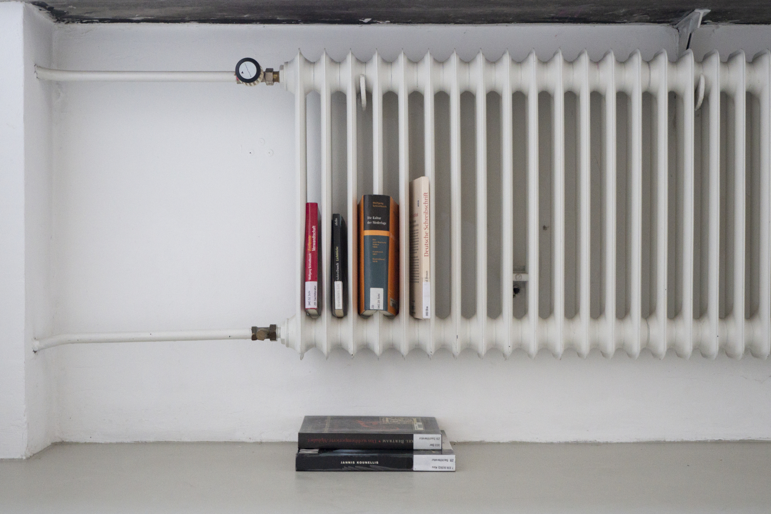 Ausstellungsansicht / Installation view Alex Bienstock, Artist Jason Hirata chooses items from a library. He exhibits those items however he wants. He returns them before they are due, 2019, Books from the city library of Nürnberg due on March 28, 2019, 25 OCTOBER, 2015 — 12 MAY, 2019, Work organized by Jason Hirata, Kunstverein Nürnberg, 2019. Courtesy of the artist.