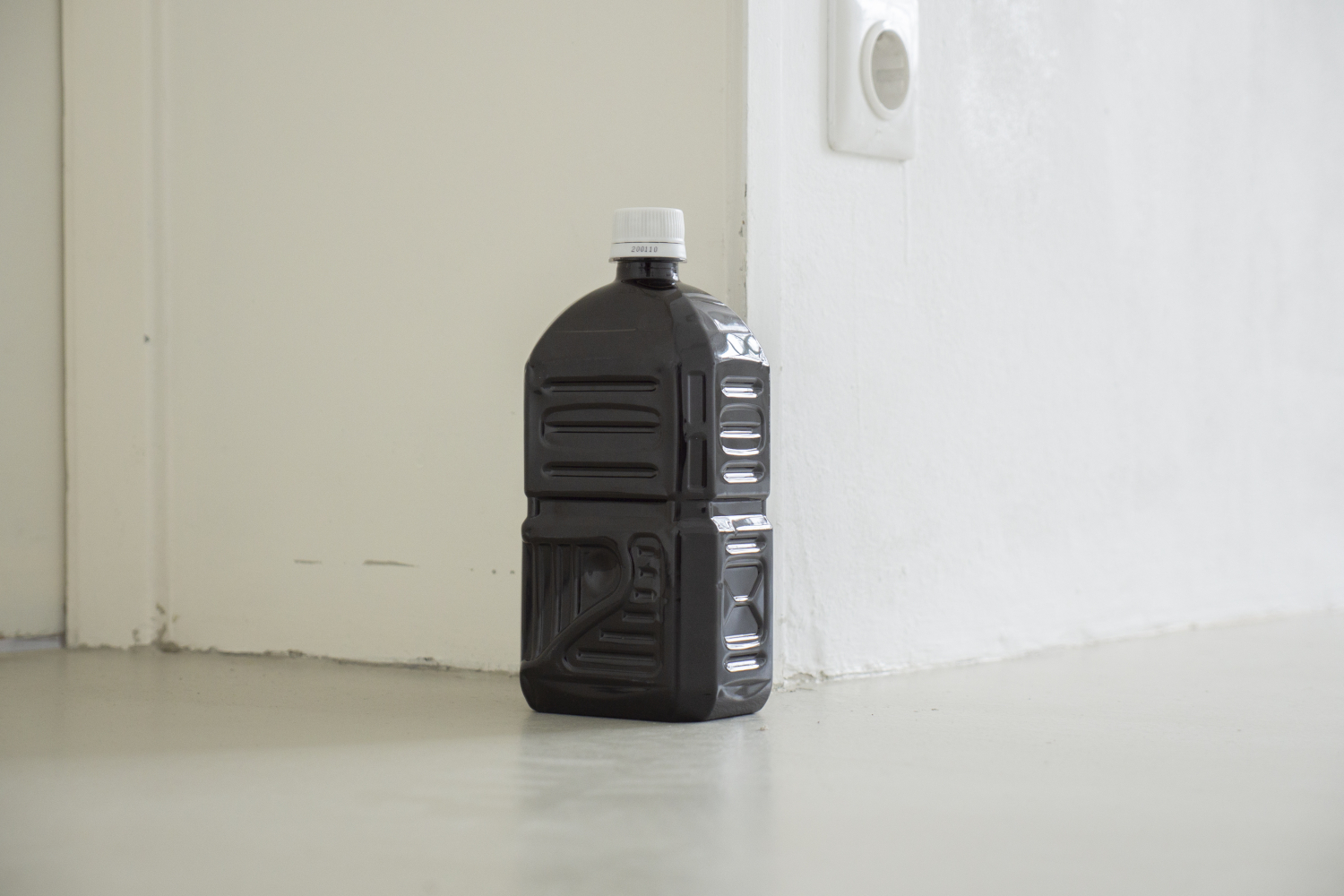 Ausstellungsansicht / Installation view Matt Browning, Form Determined, 2019, Black walnut ink, plastic bottles, 25 OCTOBER, 2015 — 12 MAY, 2019, Work organized by Jason Hirata, Kunstverein Nürnberg, 2019. Courtesy of the artist.