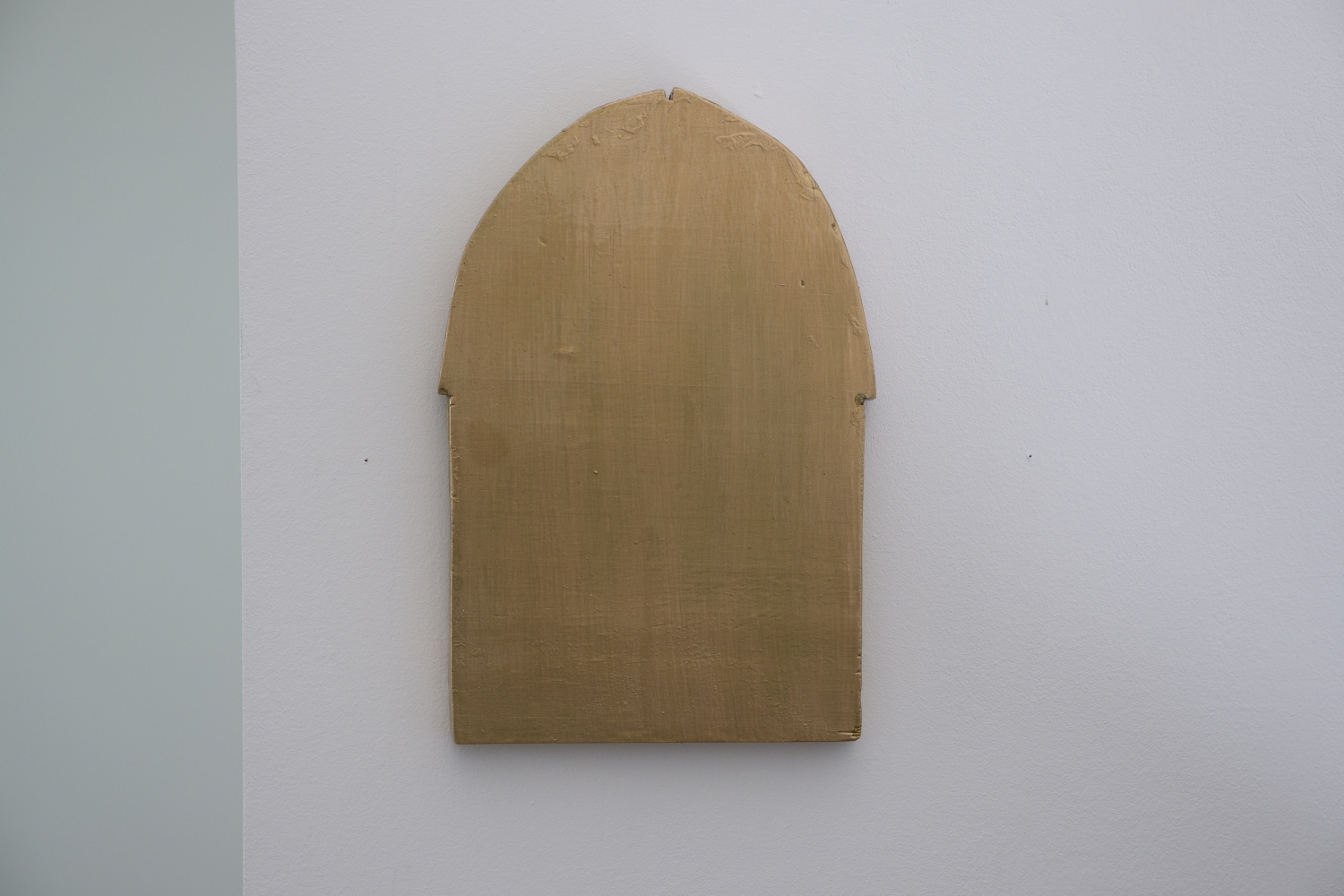 Ausstellungsansicht / Installation view Levi Easterbrooks, Modified maritime plaque for Jason Hirata made and gifted by Levi Easterbrooks, 2018, wood, gold leaf paint finish, polyurethane, 25 OCTOBER, 2015 — 12 MAY, 2019, Work organized by Jason Hirata, Kunstverein Nürnberg, 2019. Courtesy of Jason Hirata.