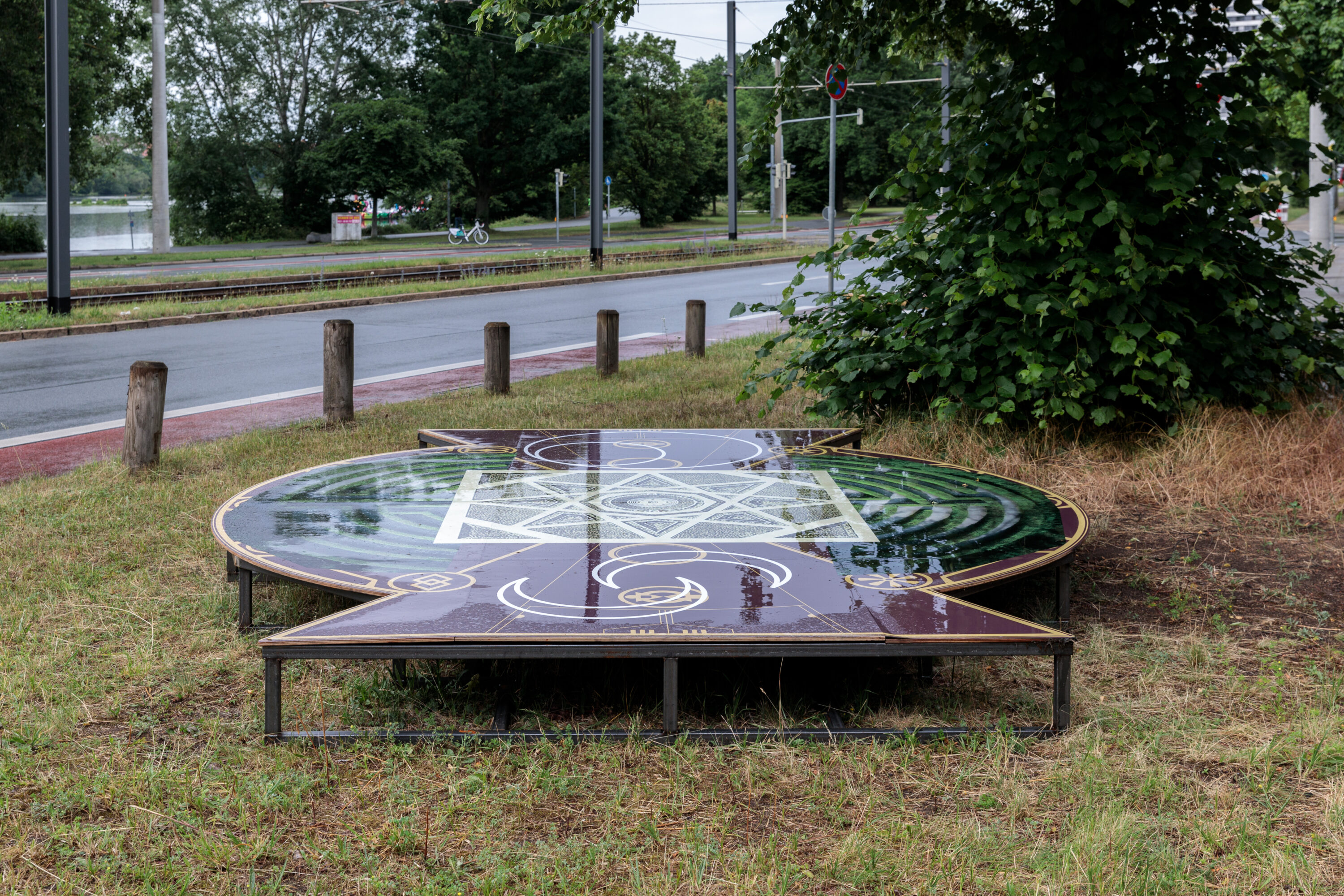 Beyond the institutional space, the project extends into the surrounding urban space and enters into dialogue with the Kunstverein Nürnberg’s neighborhood. In proximity to the nearby Norikus housing complex, home to around 2,500 residents, an outdoor sculpture will be installed to create a new communal meeting point. The experiences, memories, and thoughts of the residents will be integrated alongside contributions from invited guests. Referencing Leon Howard Sullivan (1922–2001), a U.S. pastor and activist involved in the civil rights movement and founder of Progress Aerospace Enterprises in 1968—the first Blackowned aerospace agency—the work in Nürnberg is also associated with a prominent figure in the struggle for justice and visibility.