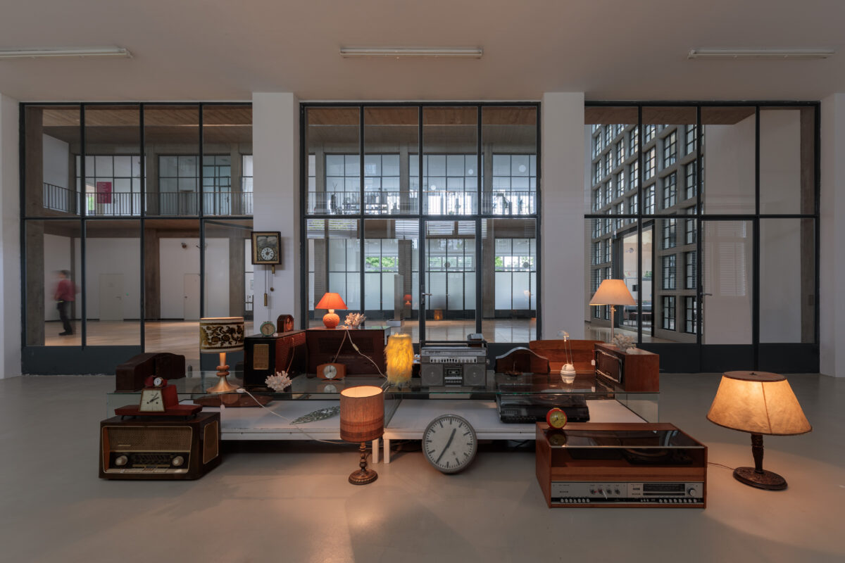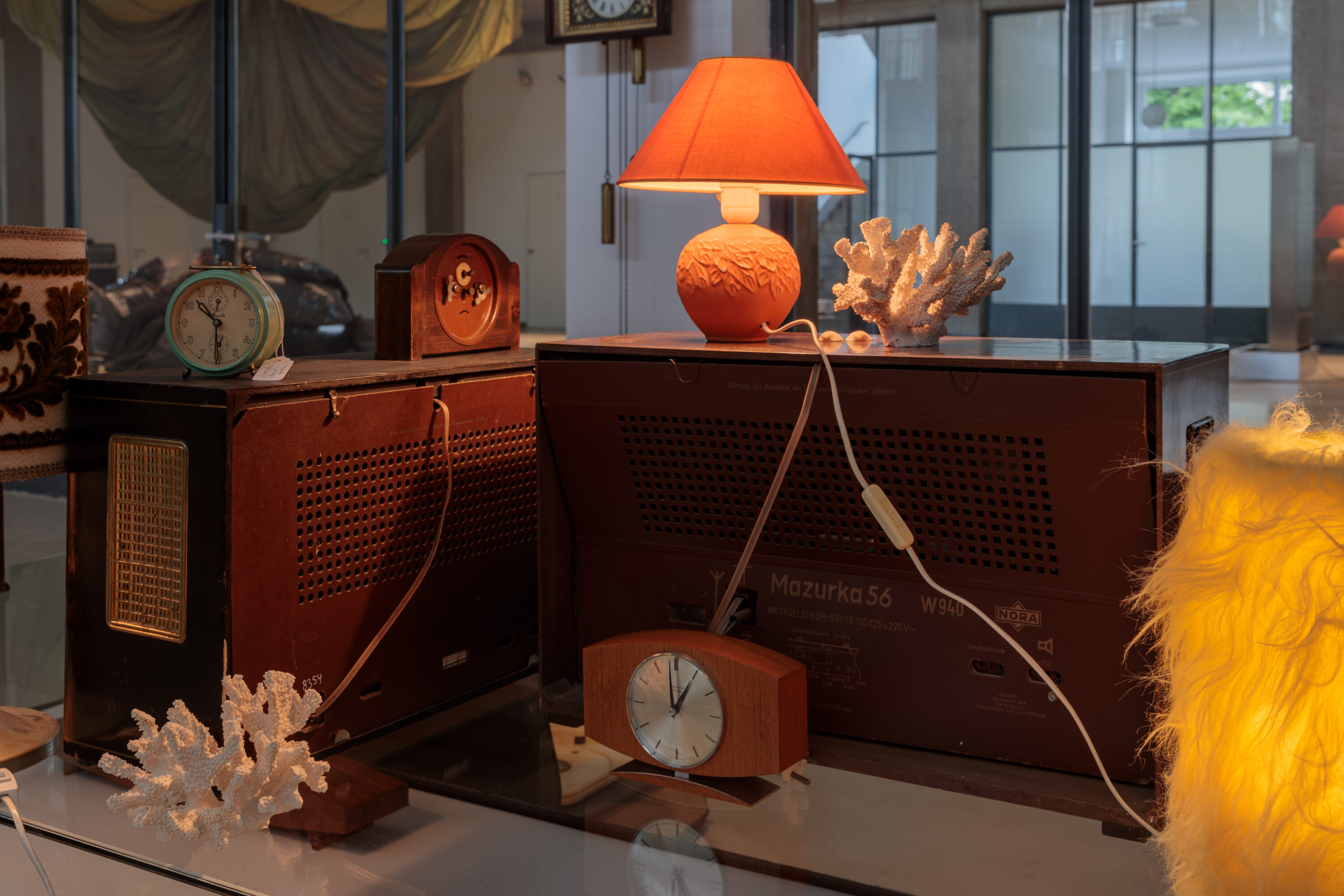 “Bending the Arrow of Time into a Circle” is a solo exhibition by the artist collective Black Quantum Futurism at Kunstverein Nürnberg — Albrecht Dürer Gesellschaft. In their work, artists Rasheedah Phillips and Camae Ayewa combine theory, poetry, music, and visual art with social engagement. Using Afrofuturist approaches, they create safe spaces for dialogue and visions centered on community, sustainability, and resilience. Through critical engagement with colonialism and racism, they imagine alternative futures in which marginalized communities can autonomously shape and connect technological, cultural, and social processes. Black Quantum Futurism fundamentally challenges the western concept of linear time and its demands for efficiency and productivity. Drawing on quantum physics, they dissolve the sequential structure of past, present, and future in favor of the simultaneity of various cyclical and subjective temporalities. Accordingly, “Bending the Arrow of Time into a Circle” explores different connections between time and space. Using locallysourced mirrors, plants, radios, clocks, fountains, as well as new sound and video works by Black Quantum Futurism, four zones in the exhibition allow for diverse experiences of perceiving time and interaction.