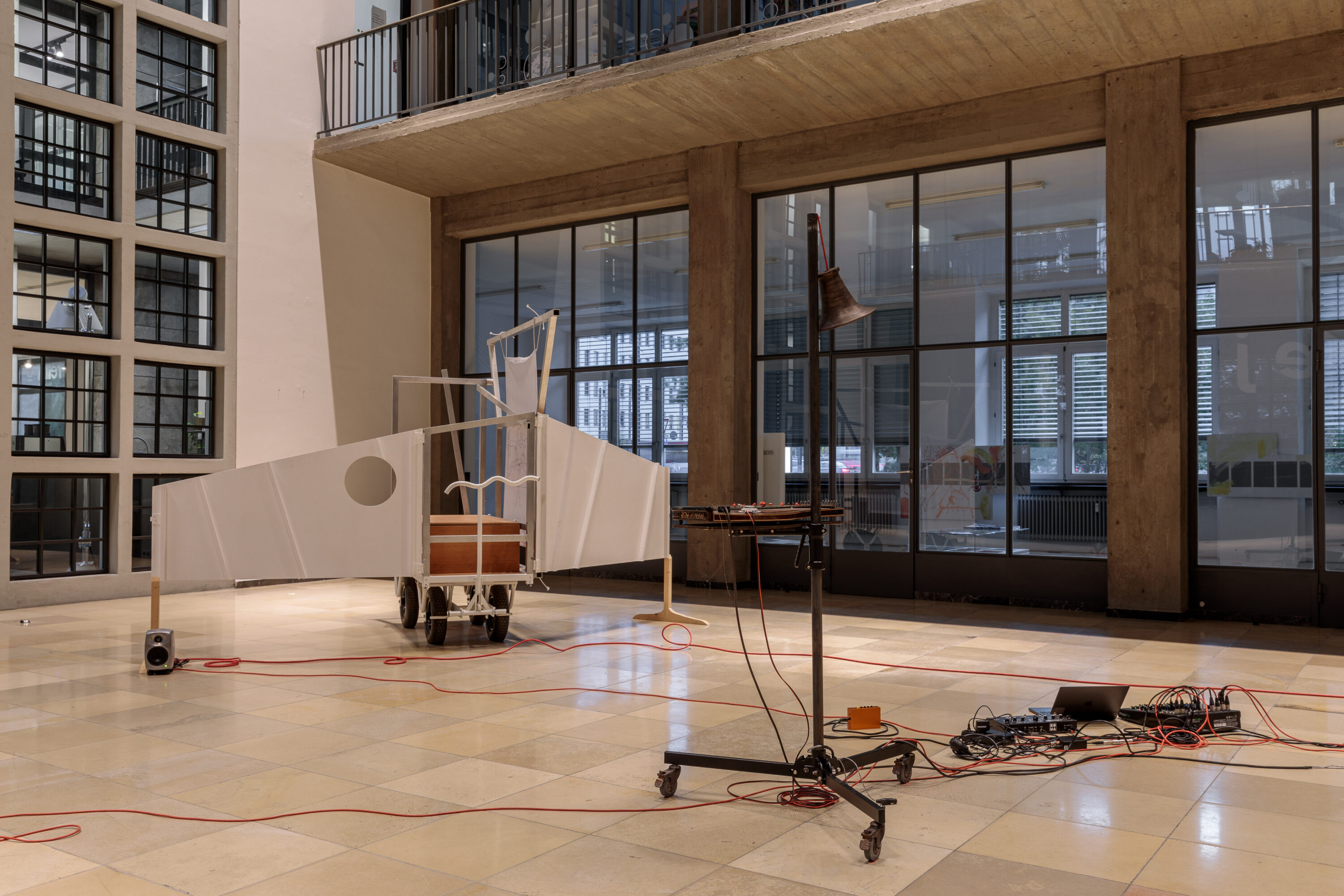 Mit einer besonderen Sensibilität für das Vergängliche und diskrete Sounds, die unsere Umwelt und unser alltägliches Leben und Erleben prägen, teilen die Künstlerinnen im Kunstverein Nürnberg — Albrecht Dürer Gesellschaft eine (Sound-)Installation in der Form eines Archivs von Klang-Samples und Fußnoten, die sich auf die verschiedenen Stockwerke des Milchhofs ausbreiten.